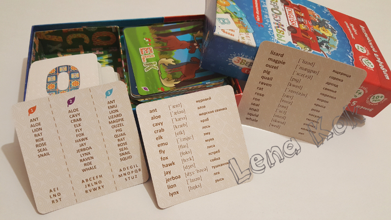 Очень удобно, что в комплекте есть карточки со словами+перевод+транскрипция