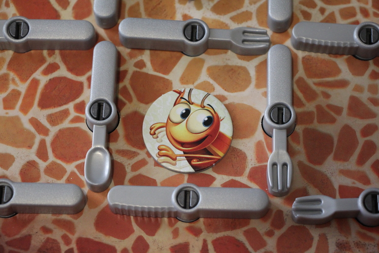Минусы игры. От тебя ничего не зависит, таракан бегает как попало, даже если ты повернешь логичный и правильный столовый прибор таракан может побежать в другую сторону. В итоге большую часть игры мы смотрим на бегающего таракана. Нет, мы конечно бросаем кубик и вертим приборы, но сюжет разворачивается сам по себе.