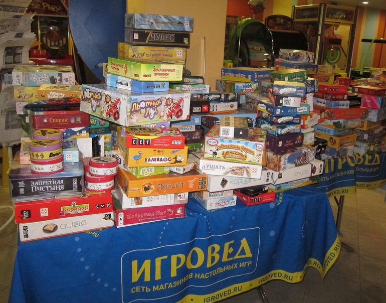 Фото сделано почти в конце игротеки, когда консультанты собрали со столов многие игры. А так в течение игротеки там только треть того, что попало на фото. И если хочешь поиграть в конкретные игры, то не всегда можно найти их на общем столе. Люди берут сразу несколько игр.