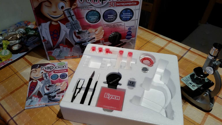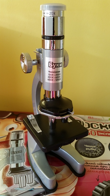 Увеличение написано на микроскопе. Хотелось бы еще больше, но это ж детский. Не сравнивала, бывает ли больше на детских