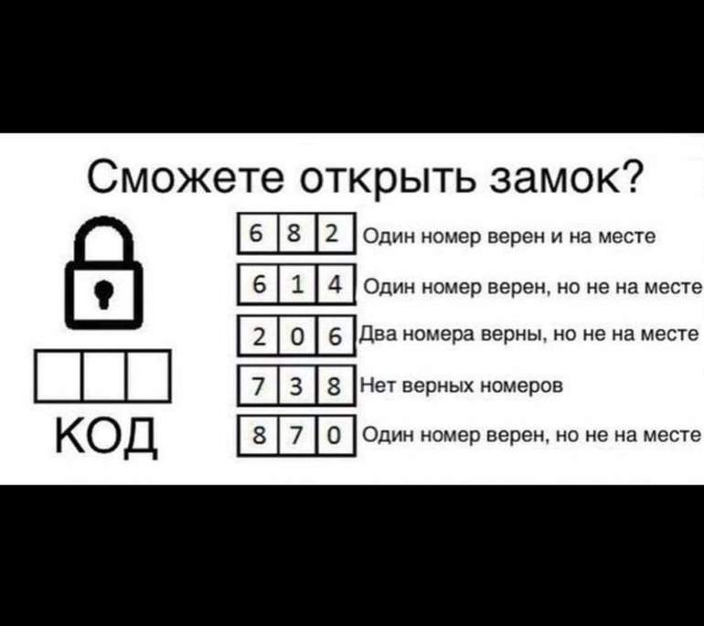 Спасибо! Как раз для домашнего квестика нужны задания на подбор кода. Утаскиваю... Но у меня замков предполагается 8 штук. Что бы ещё придумать?