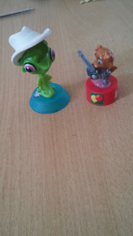 Вот такая коробочка в виде чемоданчика, а играем мы в нее такими инопланетяшками: