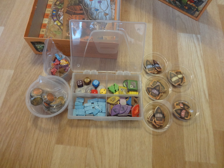 Всё дополнение, кстати, уместилось в коробку базовой версии, удобненько. Наш покупной органайзер и баночки очень пригодились.