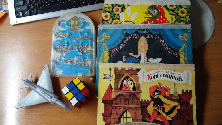 А на этом фото игрушки и книги сохранившиеся из детства мужа, в том числе фирменный кубик Рубика