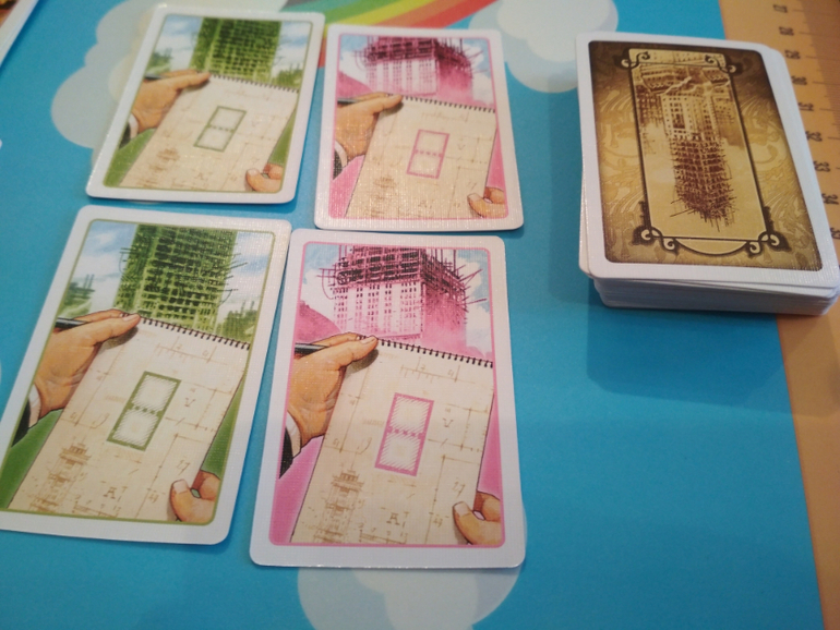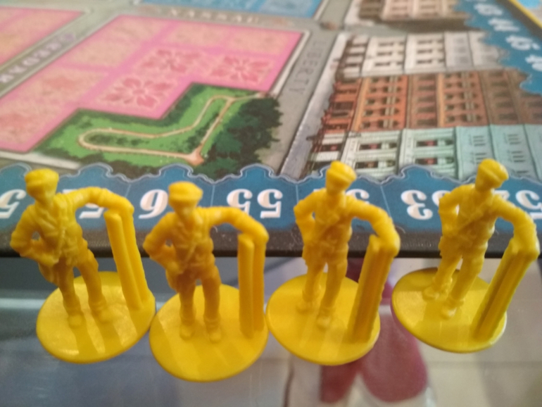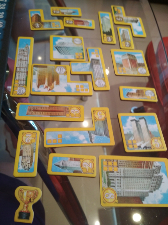 Тайлы домов уже готовы для игры, "выдавливать" не нужно. У каждого игрока имеется кубок своего цвета. При условии, что игрок может построить легендарный небоскреб (их всего 4), он поставит на него этот кубок, обозначив хозяина.