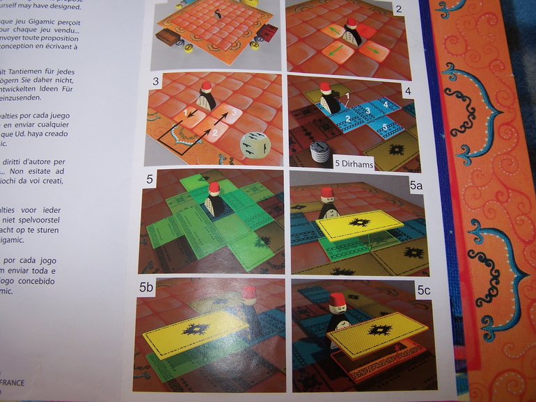 Смысл игры в том, чтобы передвигая фишку торговца коврами, занять своими ковриками максимальную площадь, при этом не разориться в процессе игры, попав фишкой на ковры чужого цвета.