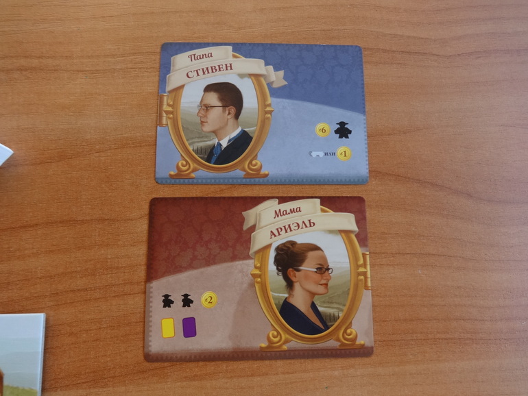 Игра началась. Каждый получает по одной карте папы и мамы, эти мои:
