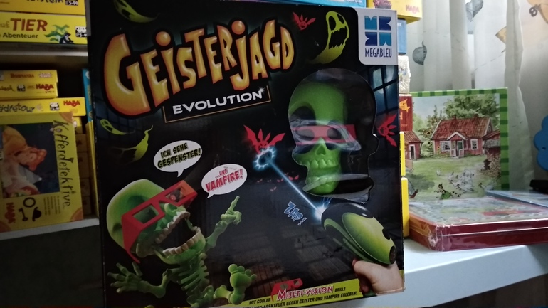 Не знаю как правильно назвать. Черепок в темноте проецирует 2 вида мишеней- призраки,за попадание в них 1 очко и летучую мышь,которая при этом перемещается,за попадание в которую получаешь 2 очка. Так вот попадать нужно пистолетом,который издает прикольные жуткие звуки. Моим мужчинам очень понравилась)))требуют второй пистолет,соревноваться на скорость.