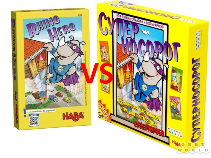 - 3. Ну и негодования теперь. Цена Rhino Hero Haba в России - 681 рубль (da-baby), 690 (wimmelhaba). Цена Суперносорога HW - 690 рублей (hobbygames, my-shop). Я понимаю, что еще есть цена доставки и что в регионы дешевле заказывать с my-shop, чем с da-baby. Но как минимум москвичам, питерцам очень советую брать оригинал.