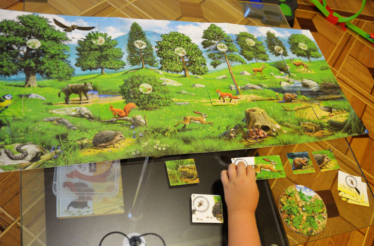 Там нужно определить всех животных по их следам и все деревья по их семенам.