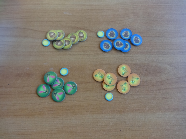 Жетоны победных очков, жетон первого игрока и жетоны четырех полных оборотов солнца, в течение которых продолжается игра: