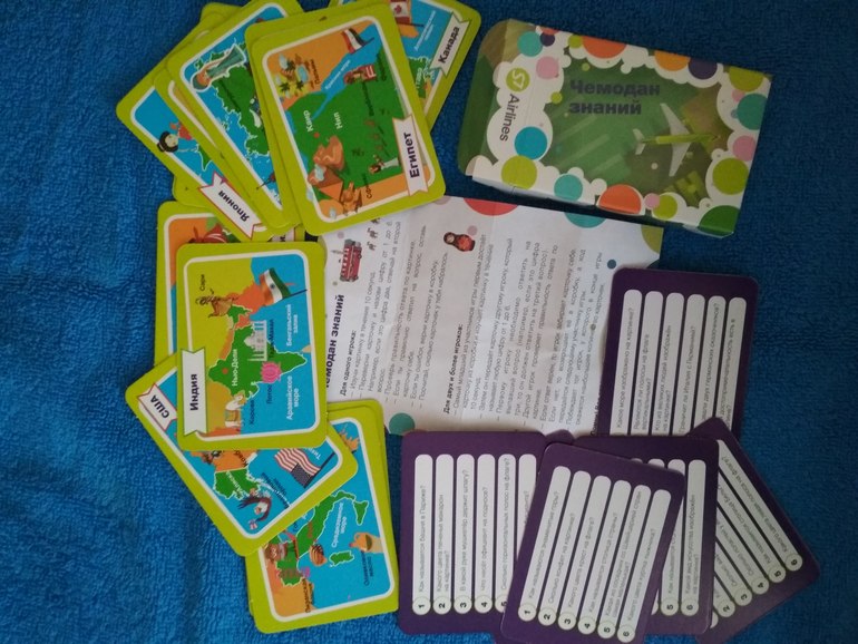 "Чемодан знаний" понравился больше всех остальных игр. Минуту смотришь на карточку и запоминаешь названия, а потом карточку переворачиваешь и отвечаешь на вопрос, номер которого называет соперник. Соперник при этом видит лицевую сторону карточки, а отвечающий уже по памяти силится вспомнить ответ.