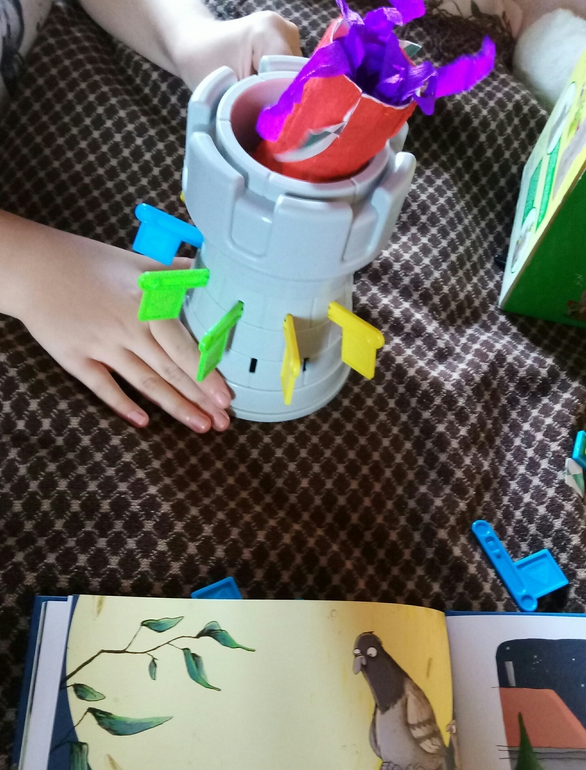 Игру от ELC нам отдали без дракончика, сначала мы запускали там кого не попадя, а потом благодаря одной замечательной книге про мышат Моцарта и Робинзона Волшебство сырной луны сделали ракету, для мышек, и эта игра оказалась замечательным пусковым аппаратом)