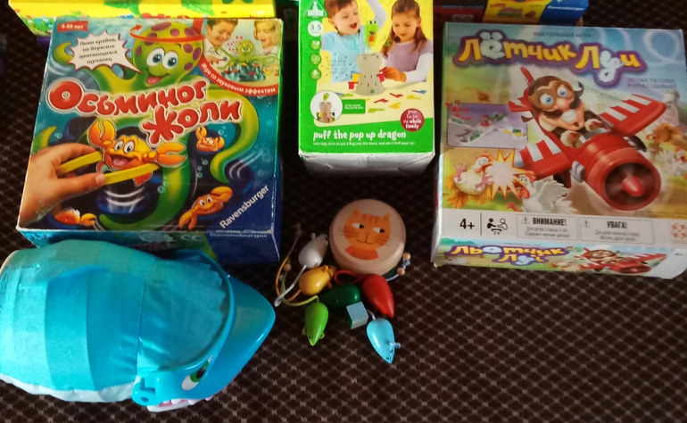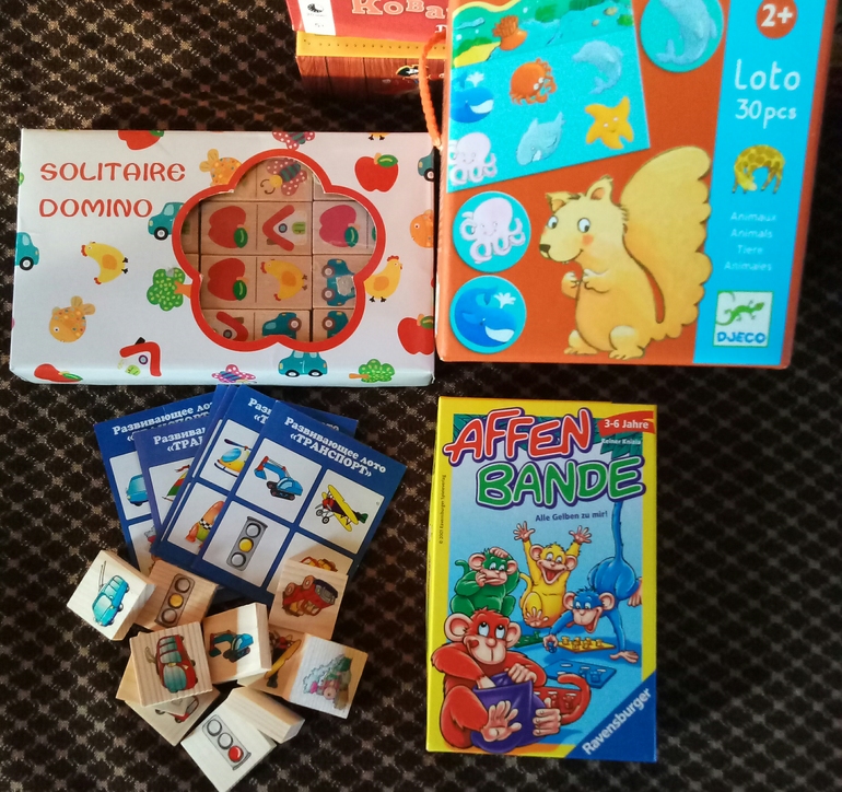 Разнообразные лото, домино. Отдельно хочу сказать про лото от Джеко, больше года лежало дома почти не тронутым, несколько раз предлагала, но вообще не шло, а тут, в компании, прям хитом стало, и старшие, чему я очень удивилась, с удовольствием в нее играют! Жетоны достаем по очереди.