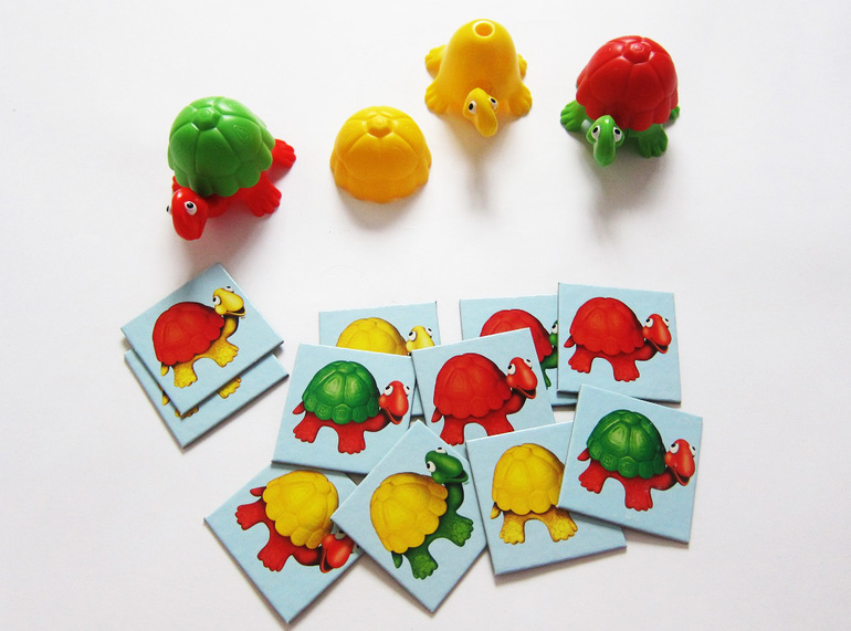 Веселые черепашки от Piatnik тоже поздно куплены. Есть у меня такая привычка - иногда просматриваю на Авито, что продают в нашем районе. Вот и наткнулась на черепашек по хорошей цене. Диме они очень понравились, но игра для него, конечно, простовата.