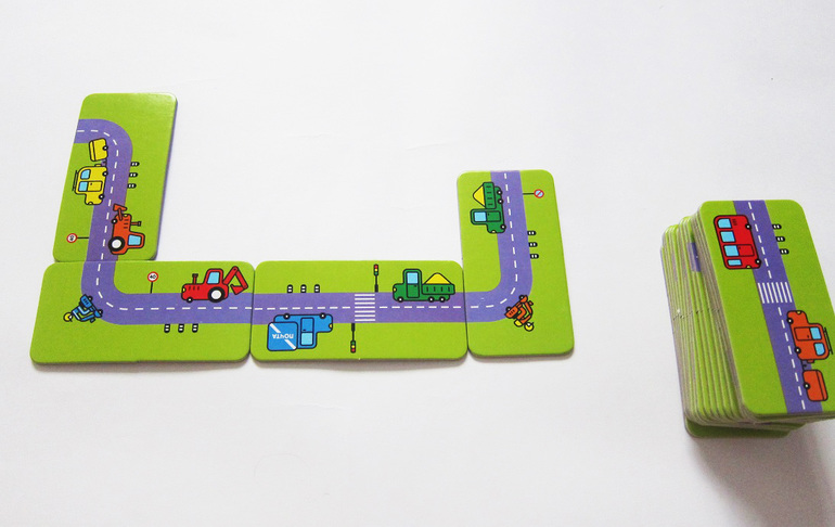 Также не распробовали еще домино В путь - дорогу. Очень уж оно мне нравится, но тема транспорта совершенно нейтрально воспринимается сыном, поэтому и игра, увы, пока редко востребована. Дима даже не заметил, когда часть машинок перекочевали в детский сад.