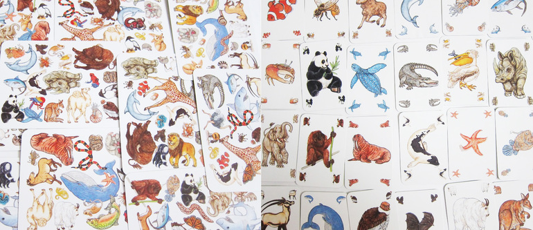 Занимач от Djeco. Одна из первых покупок. Сразу стала хитом. И не сдает свои позицию уже больше полугода. Это, наверное, единственная игра у этого производителя, которая резко отличается своим немалышковским дизайном от остальных. Ее характеристики - это натуралистические рисунки, 60 карт животных и 12 больших карт, отличное качество и маленькая выдвижная коробка для хранения.