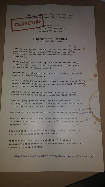 Игра состоит из 108 карт ночных страхов, 4 памяток, листовки "секретно" и правил.