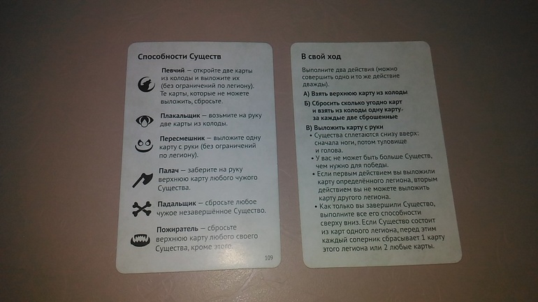 2. Существо выкладывается только снизу вверх, то есть выложить туловище раньше ног нельзя. Ноги выкладываются просто так в свой ход.