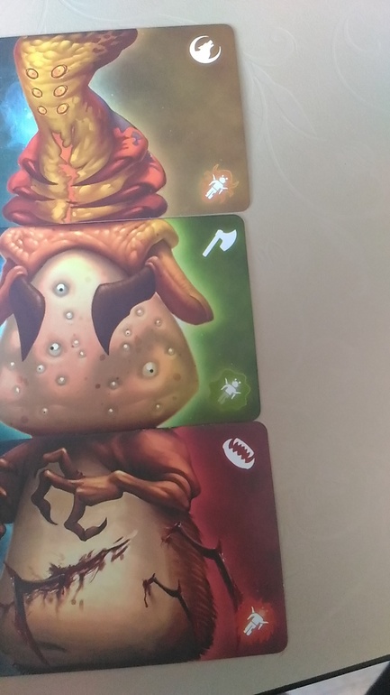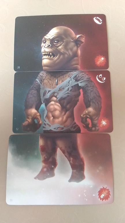 Так же в верхнем углу у некоторых карт есть специальные способности которые срабатывают когда игрок завершает существо. В нижнем углу карт указано к какой части тела она относится, эта часть выделена ярче, есть карты относящиеся сразу к нескольким частям тела.