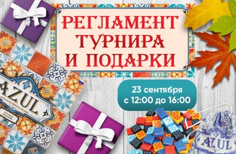 анонсы, акции, объявленияВсем-всем-всем! 23 сентября с 12 00 до 16 00 пройдет турнир по настольной игре Azul. Город Москва, фестиваль Игрокон.