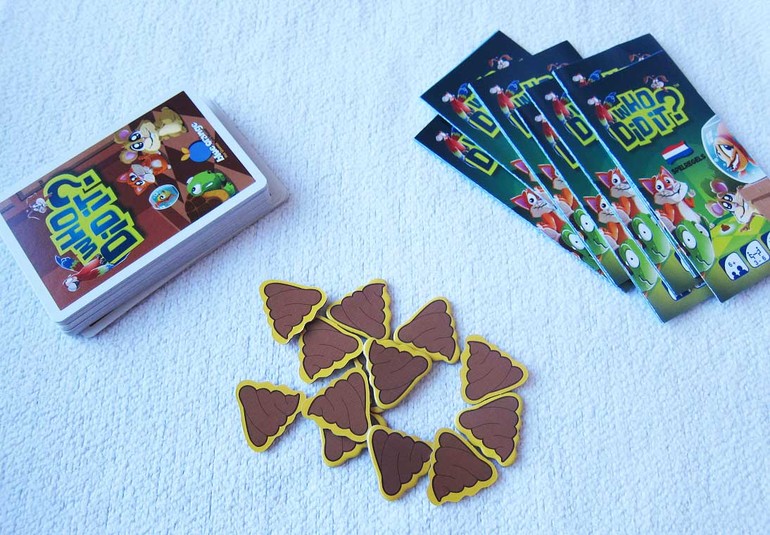 ... уютно разместилась колода карт, несколько буклетов правил на разных языках и 13 фишек с какашками.