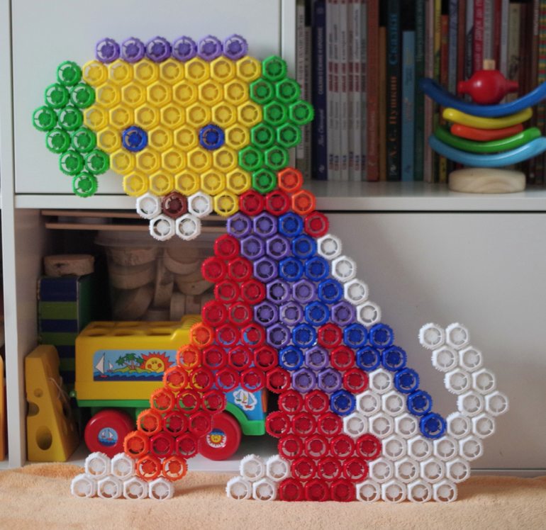 Этот конструктор, который нам достался, можно сказать, в подарок стал одним из самых любимых. Раньше у дочери не получалось соединить детали между собой, т.к. это не такое уж простое дело для ребенка. Но вот ближе к 5-ти годам стало получаться всё лучше и лучше. А сейчас она уже собирает эту мозаику легко и в помощи мамы теперь не нуждается.