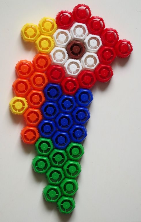 Жаль, что раньше я эти крышечки иногда выбрасывала, иначе их у нас было бы ещё больше. Сейчас пюре покупаем уже не так часто, как раньше, т.к. младший ребенок к ним равнодушен. Теперь если вдруг покупаем пюре, то крышечку обязательно сохраняем для пополнения конструктора-мозаики.