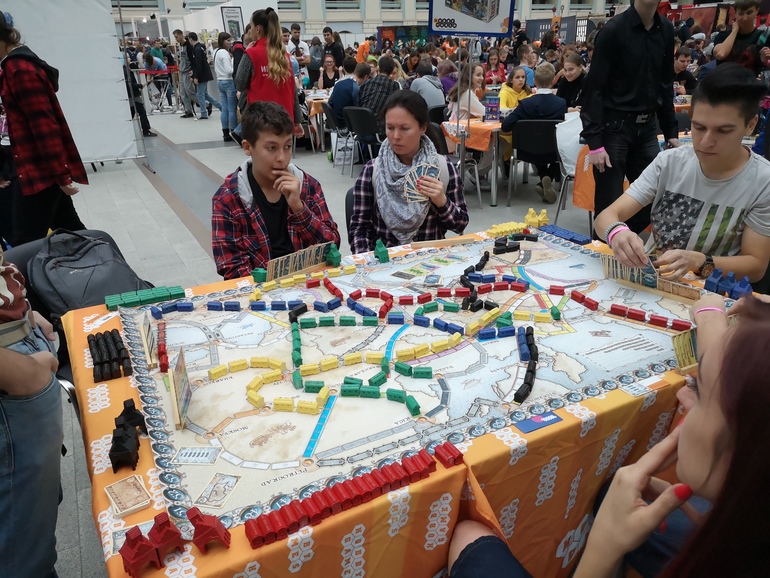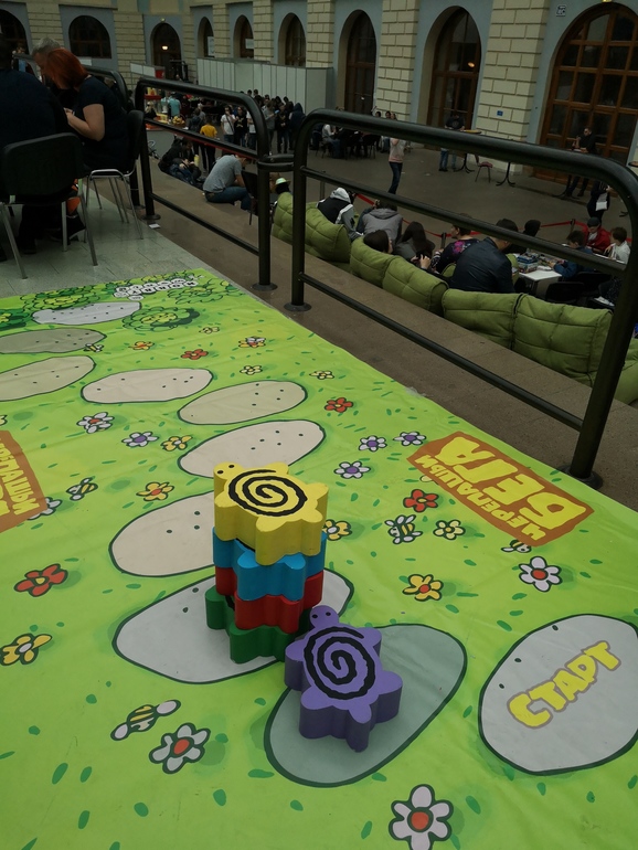 В итоге полноценно сыграли только в День бобра и то, потому что правила нашлись у соседей. Понравился Трубиринт, надо подумать над ее покупкой так как очень эмоционально у нас игра проходила. До Артефициума не добрались - устали. Пес на крыше видела только на стенде и наш папа забраковал ее. Посмотрели Пришельцы в кукурузе - показалась слишком простой. Вампирчики лежали на полке, помнится все в закупке брали, но вспомнить о чем игра не смогла. Немного жаль было сотрудников Игроведа - многие игры бросали прямо на столах, потом во многих коробках не хватало деталей и правил.
