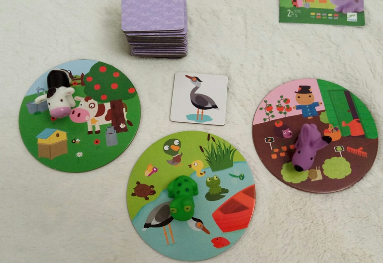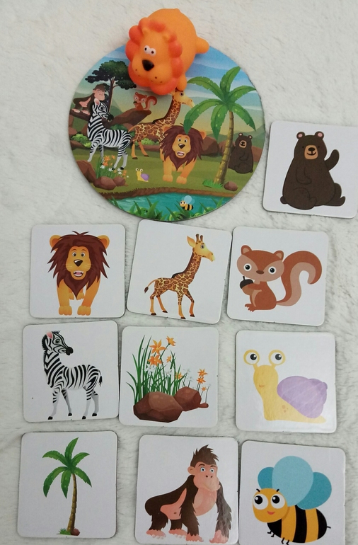 У нас же зверюшки сразу стоят на своих карточках Миры, и нужно просто быстрей схватит нужного зверя, к миру которого принадлежит изображенный на карточке предмет.