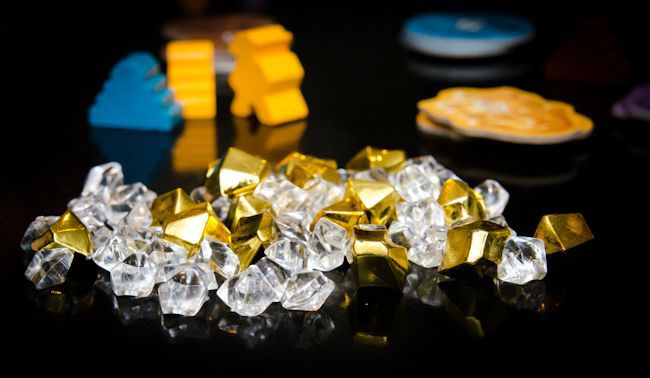 Вот собственно и все правила. Кто первым доберётся до храмов и заберёт себе самые дорогие сокровища, не забыв по пути прихватить немного из валяющегося в джунглях золота-бриллиантов (ах, как мне нравятся эти камушки), вполне вероятно одержит победу (игра заканчивается, когда один из игроков доберётся всеми своими человечками до храмов или если закончатся все тайлы).