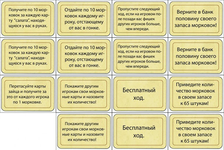 Единственное, что нельзя предусмотреть в этой игре - это карточки зайцев (которые получаешь, если встанешь на клетку с зайцем). Там может оказаться что-то хорошее для тебя (например, бесплатный ход) , а может и плохое (верните в банк половину своего запаса морковок). Почти как "Сюрпризы" в вышеупомянутом "Менеджере". Не знаешь чего от них ждать)