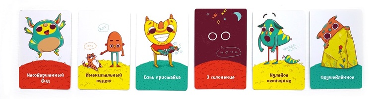 В этой весёлой и полезной настолке все термины располагаются на карточках с яркими и запоминающимися персонажами. Именно поэтому все части речи, падежи и склонения становятся предельно понятными и прочно закрепляются в памяти.