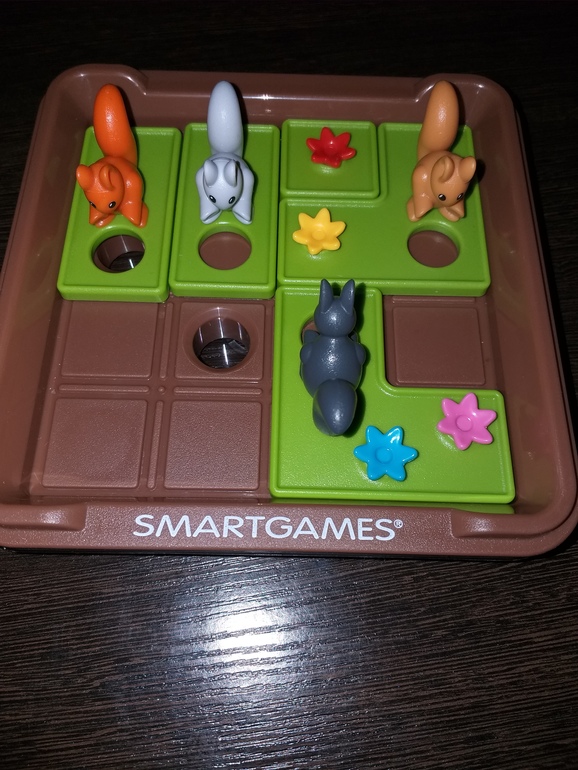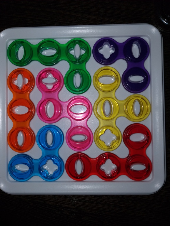 Мне наоборот удобно, когда стоит равномерными коробочками на полочках, а не разных размеров лотками. Хотя самоделки у меня как раз так и хранятся) А в гостях лучше идут не головоломки, а какие-то конкурентные игры... Я даже порадовалась, что крышка не пластиковая - не треснет, если уронить.