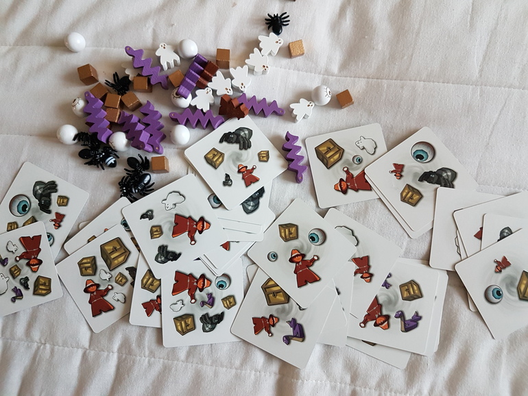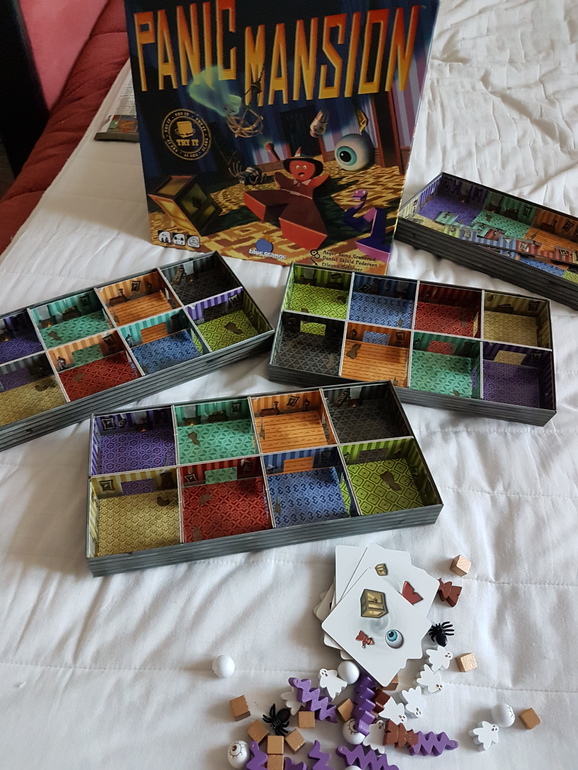 Правил на русском языке в моём экземпляре с Озона нет, но можно скачать с Игроведа. Предлагается несколько вариантов. Каждый игрок получает одно поместье из восьми комнат, искателя приключений, сундуки с сокровищами и кучку всякой нечисти. А дальше можно следовать официальной инструкции, а можно и свои правила придумать, попроще или посложнее. Цель игры - загнать всех персонажей с карточки в нужную комнату, не прикасаясь к фигуркам, а только встряхивая и наклоняя коробку. Кто первый, тот и молодец. Для детей помладше можно помещать в коробку только нужных персонажей, для постарше всех.