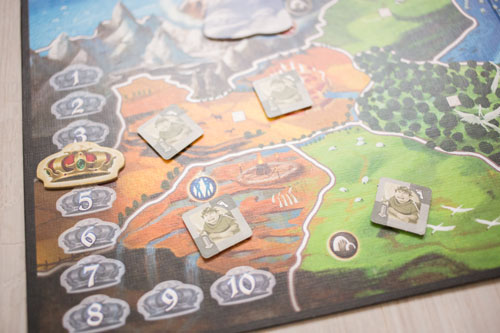 Следующий этап - это захват регионов с помощью жетонов выбранного вами народа. Но не все так просто, на вашем захватческом пути будут возникать сложности - забытые племена, горы, народности соперников и воздвигнутые их особыми свойствами крепости. Все это придется героически преодолевать, чтобы получить в конце раунда заветные победные монеты.