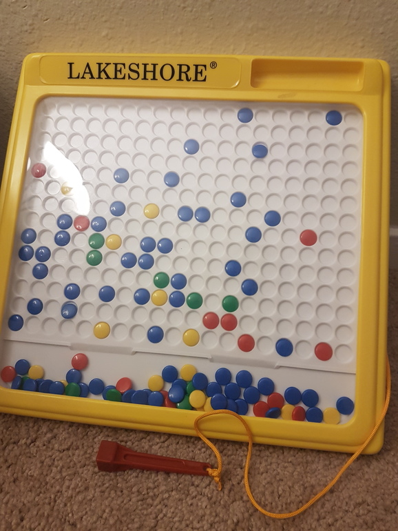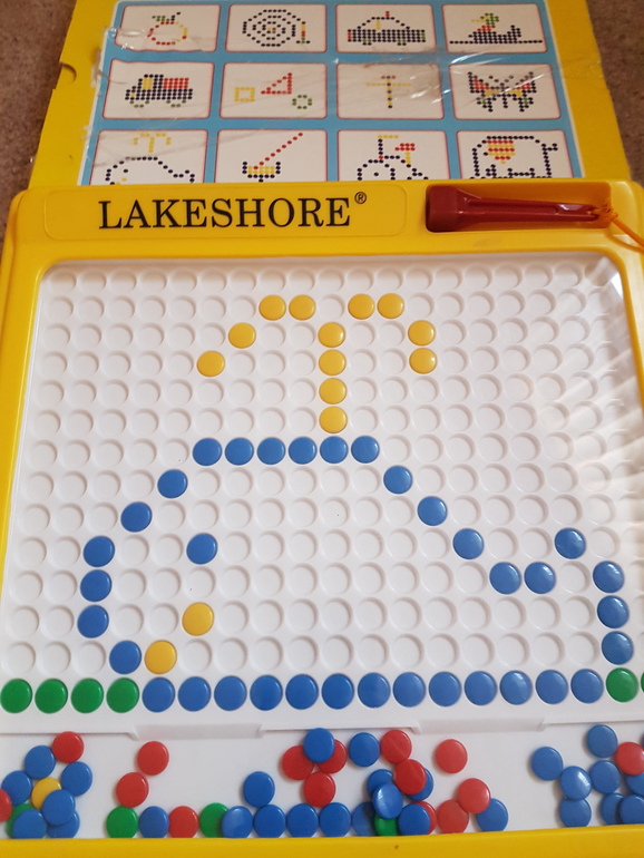 Из мозаик - магнитные, с крупными деталями. То есть все такое, чтобы деятельность на кропотливое вышивание не была похожа)