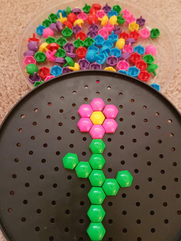 И простая мозаика с шестиугольными детальками, которая с нами уже много лет, моя самая близкая сердцу, в которую лет 10 назад играли еще мом племяшки🤗