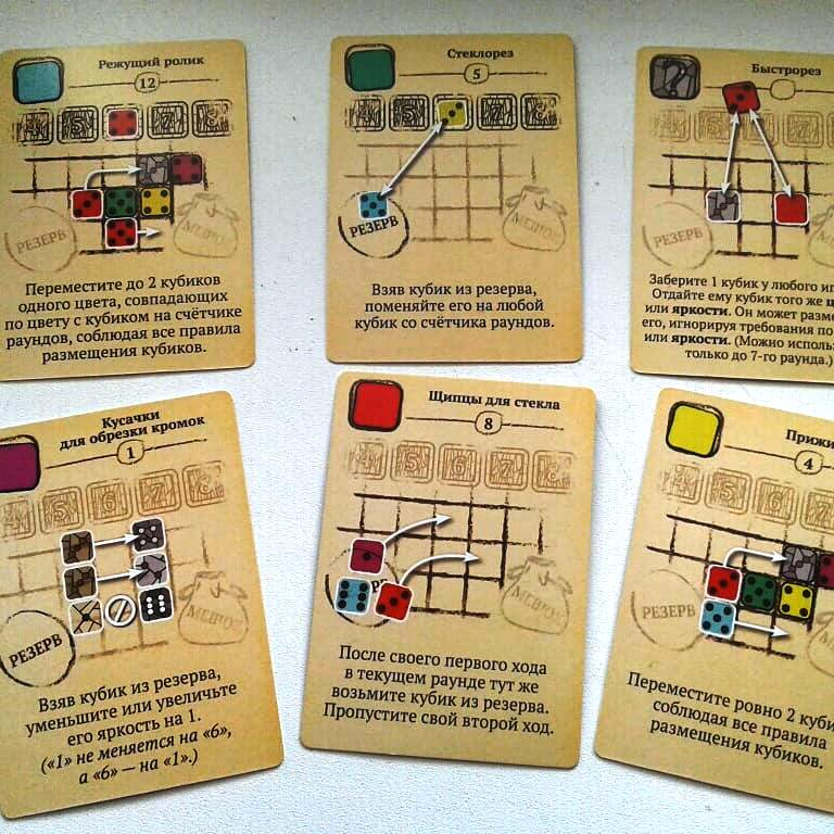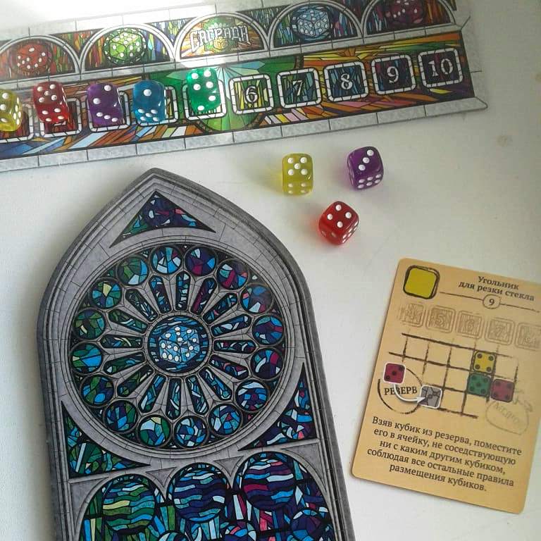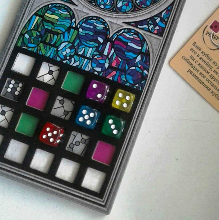 В Саграде таких "цветных стёклышек" почти сотня! Набираешь из мешочка горсть гладких прозрачных разноцветных кубиков, кидаешь в центр стола и замираешь в нетерпении, что же там выпало... Потом, затаив дыхание ждёшь, когда остальные игроки выберут себе по кубику. И вот, когда до тебя наконец-то доходит очередь, хватаешь сокровище и бережно размещаешь на только ему предназначенное место! В этот момент твой внутренний перфекционист ликует! :)))