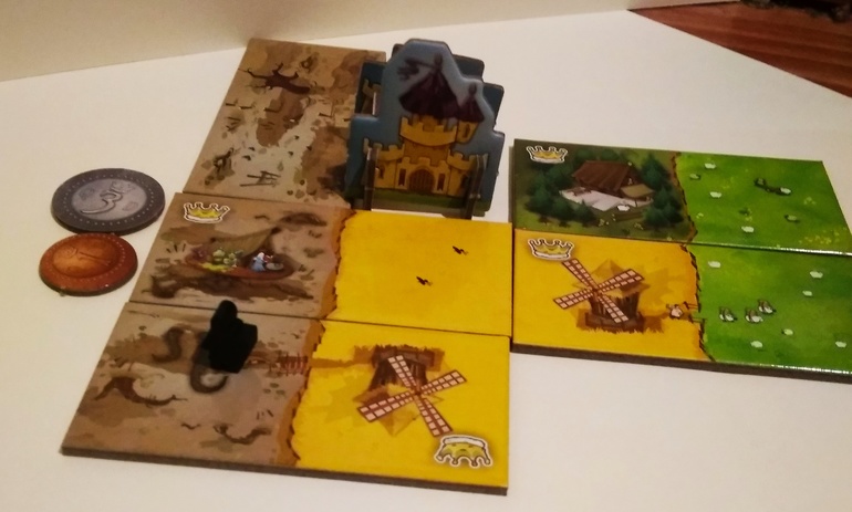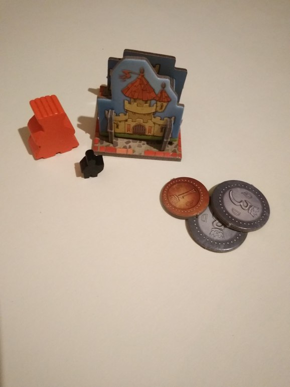 Перед началом игры каждый участник получает фишку королевы своего цвета, стартовый участок, замок , монеты на общую сумму 7 и одного рыцаря.