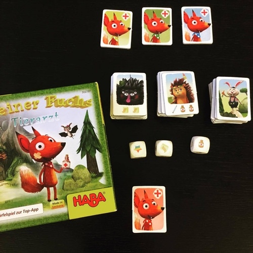 Лисичка ветеринар, игра на удачу выпавших кубиков, выпали нужные символы - полечили, карточку себе забрали