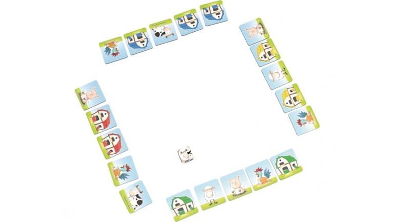 Ферма, тоже вид мемори. По броску кубика отправлять своих животных в амбар (перевернуть карточку), либо разбудить животное соперника (перевернуть обратно карточку соперника, но только с животным, выпавшем на кубике)