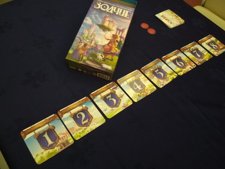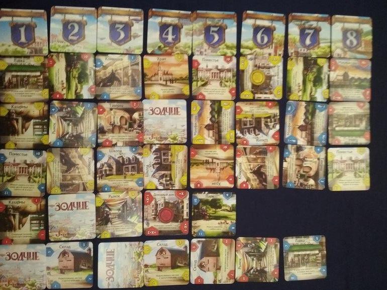 Сначала выкладываем в качестве игрового поля 8 карточек кварталов