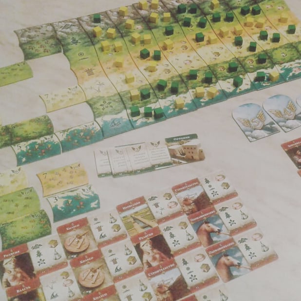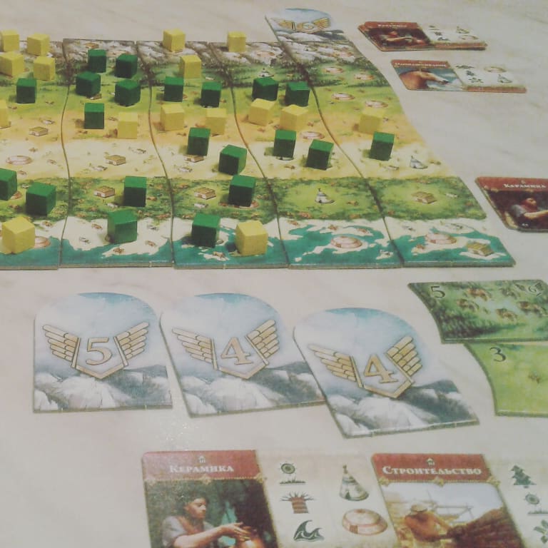 Продвигаясь по полю, открываешь новые города, а они открывают перед тобой новые возможности. И вот уже ты меняешь вектор развития потому, что замаячили новые выгоды. Но мне, например, удалось выполнить не все условия для дополнительных бонусов, а вот у мужа сложилось всё удачнее :)