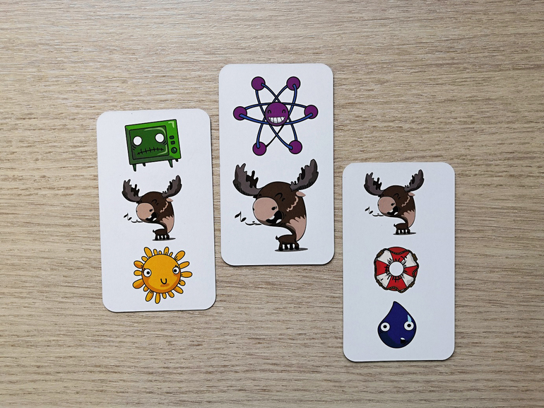 "Почему же лось в центре? Это неспроста!"-скажите вы и окажетесь правы. Существует правило Лося и гласит оно так: если на карте задания изображен лось, то необходимо нажать пальцами на него, игнорируя изображения других предметов. Игрок, который сделал это первым, защищает свои ранее выигранные жетоны, а остальные игроки возвращают по одному жетону в общую выкладку из своего "хранилища".