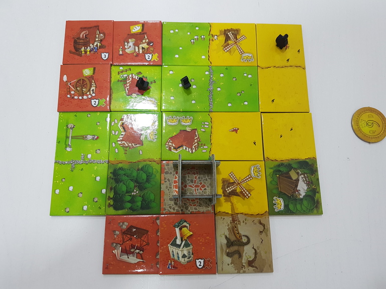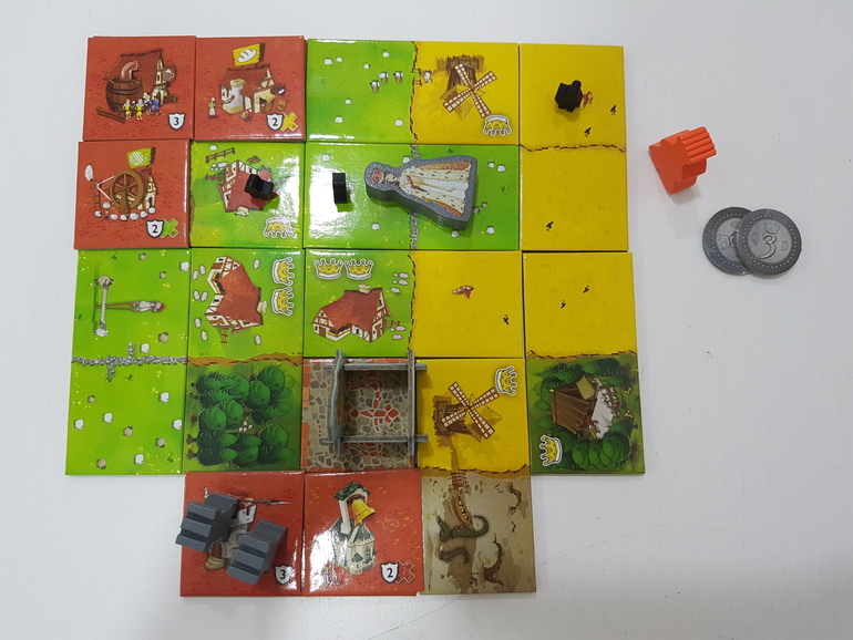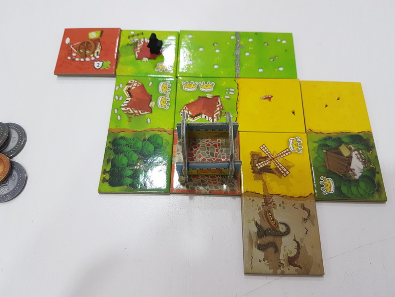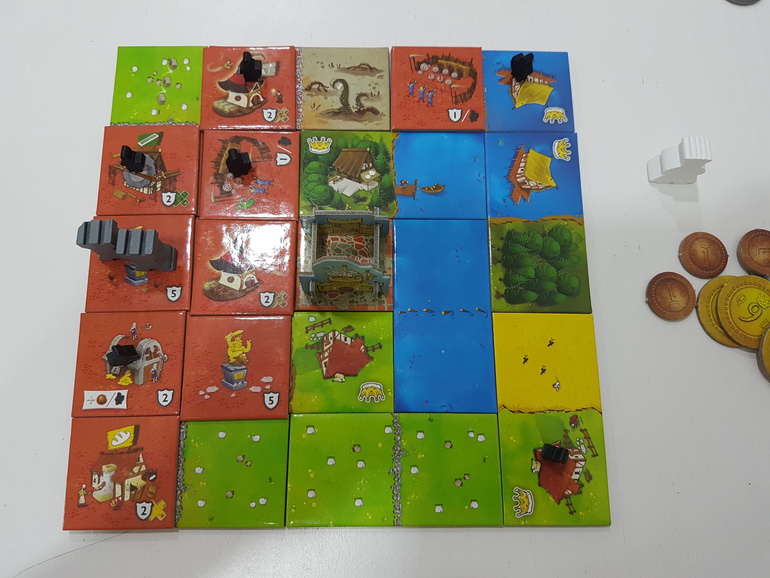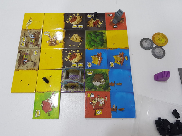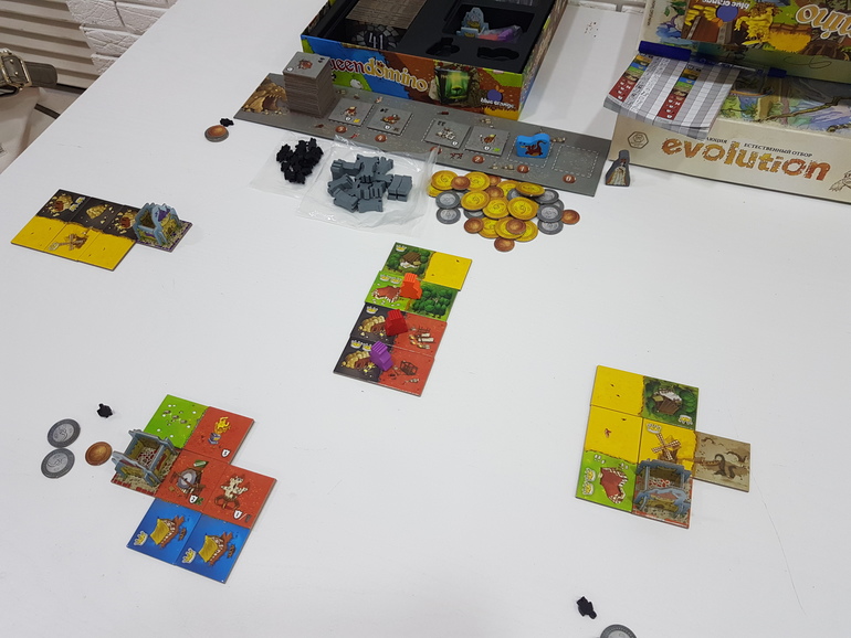 Итак, мы подготовили компоненты и начали партию, как в Лоскутном королевстве, выкладывая тайлы и занимая своим королем наиболее выгодные в данный момент.