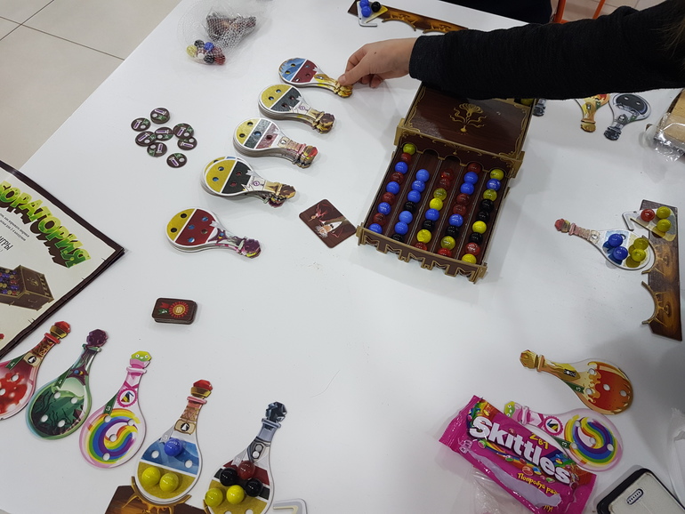 Пока мы ломали голову над Селестией, дети взяли поиграть Лабораторию (и умудрились рассыпать шарики по полу). Вот Лаборатория точно им понравилась.