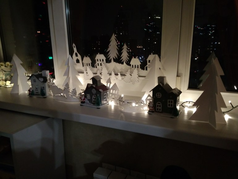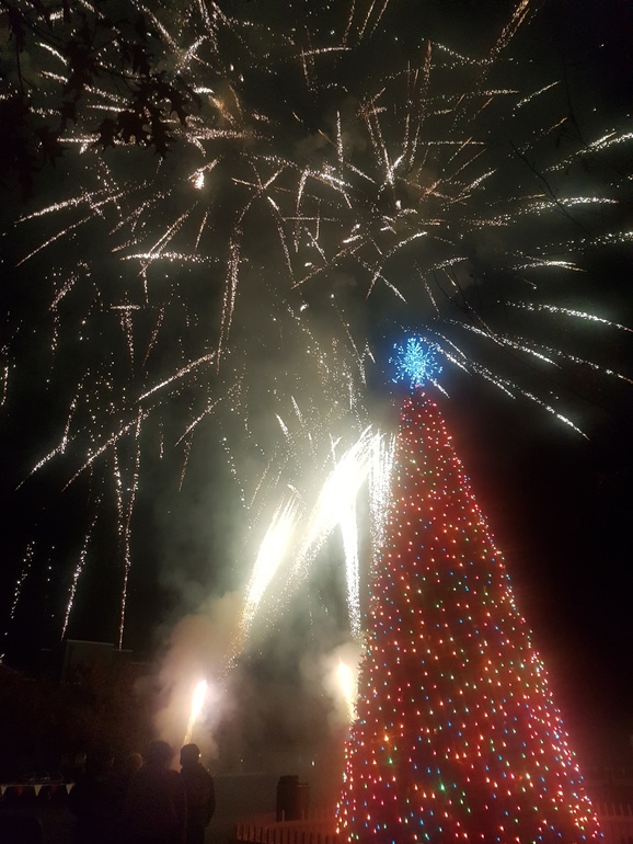 Вернувшись, успели посмотреть на включение ёлочки в ближайшем коммьюнити парке