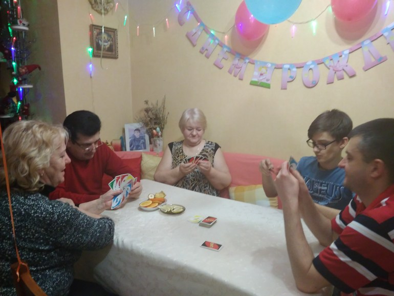 игры не видно, но просто поверьте. Играли в алиас и фантазёры. ( Это уже Хелоувин с друзьями). Вывод! Нам повезло. Всегда есть желающие поиграть с нами. Играют и бабушки с дедушками, , и родственники, и друзья ( друзья живут с нами в одном подъезде)