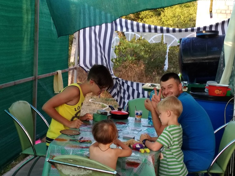 младшие ждут очереди. Старшие играют в какую-то очень серьезную игру.